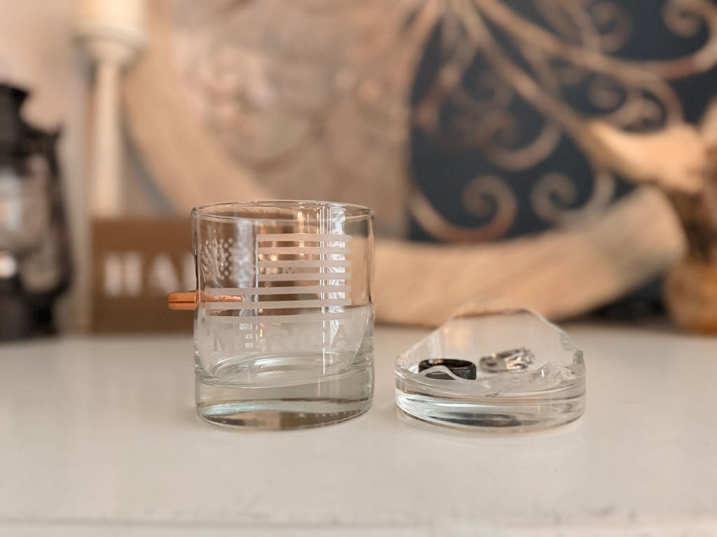 These glasses are handmade one at a time by our artisan glassmakers right here in Wisconsin - no mass production. We use glass kilns to heat up each piece to over 1000°F and then anneal. From start to finish, each glass takes about 7 hours to complete. Because of this handcrafted process, no two glasses are exactly the same.