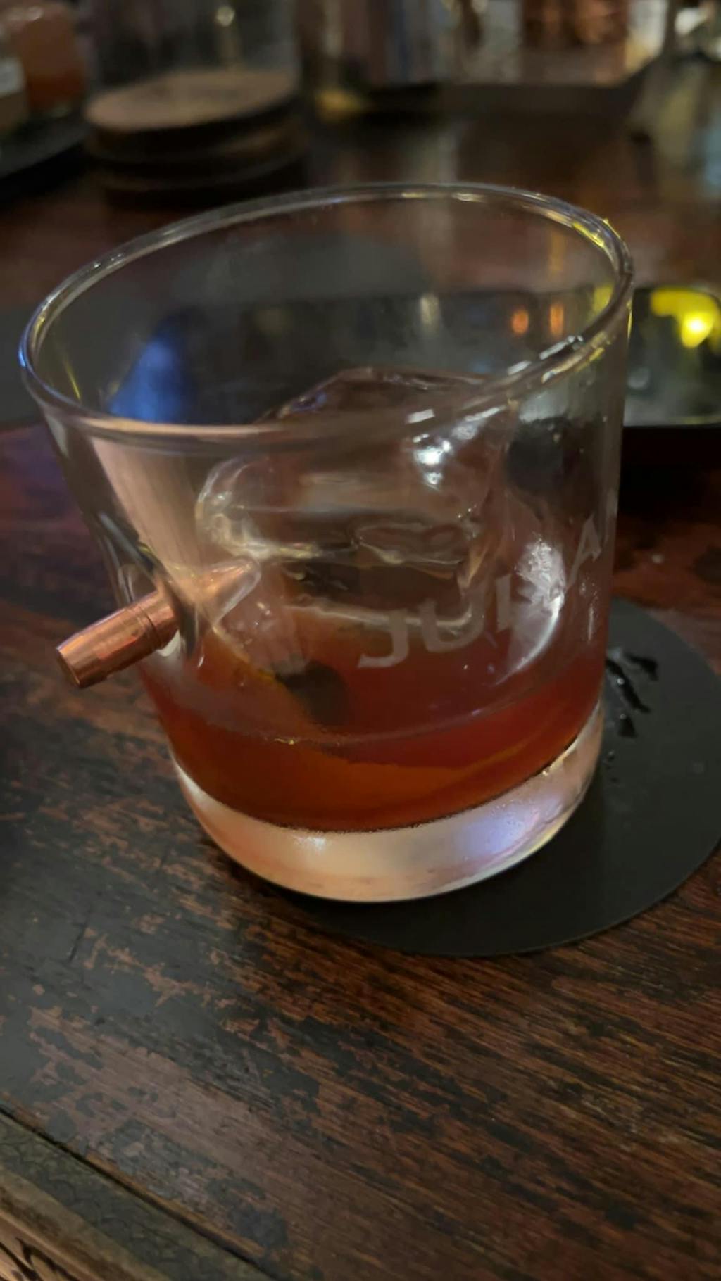 Whether you're gifting to a fellow patriot or adding a striking piece to your home bar, this 11oz rocks glass turns an ordinary drink into a conversation starter. Each glass is hand embedded with a real, lead-free bullet.