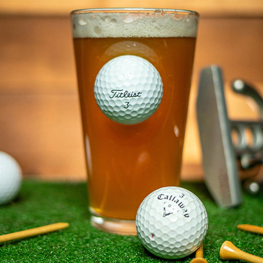 We embed a real Titleist golf ball into each glass we make. Our golf ball glasses are high-quality, heavy, and handcrafted in our glass workshop in Wisconsin. All packaging and raw materials are made in the USA.