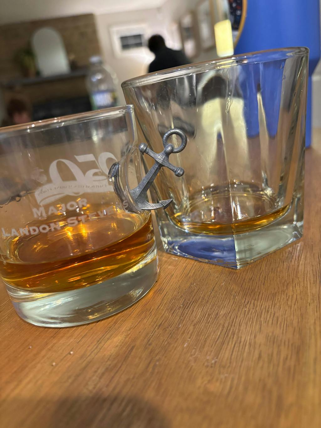 Each glass proudly bears the official 250th anniversary logo of its respective branch, permanently laser etched for lasting tribute. Each piece is embedded with an iconic, solid metal object precision-crafted and permanently embedded by our team of American glassmakers.