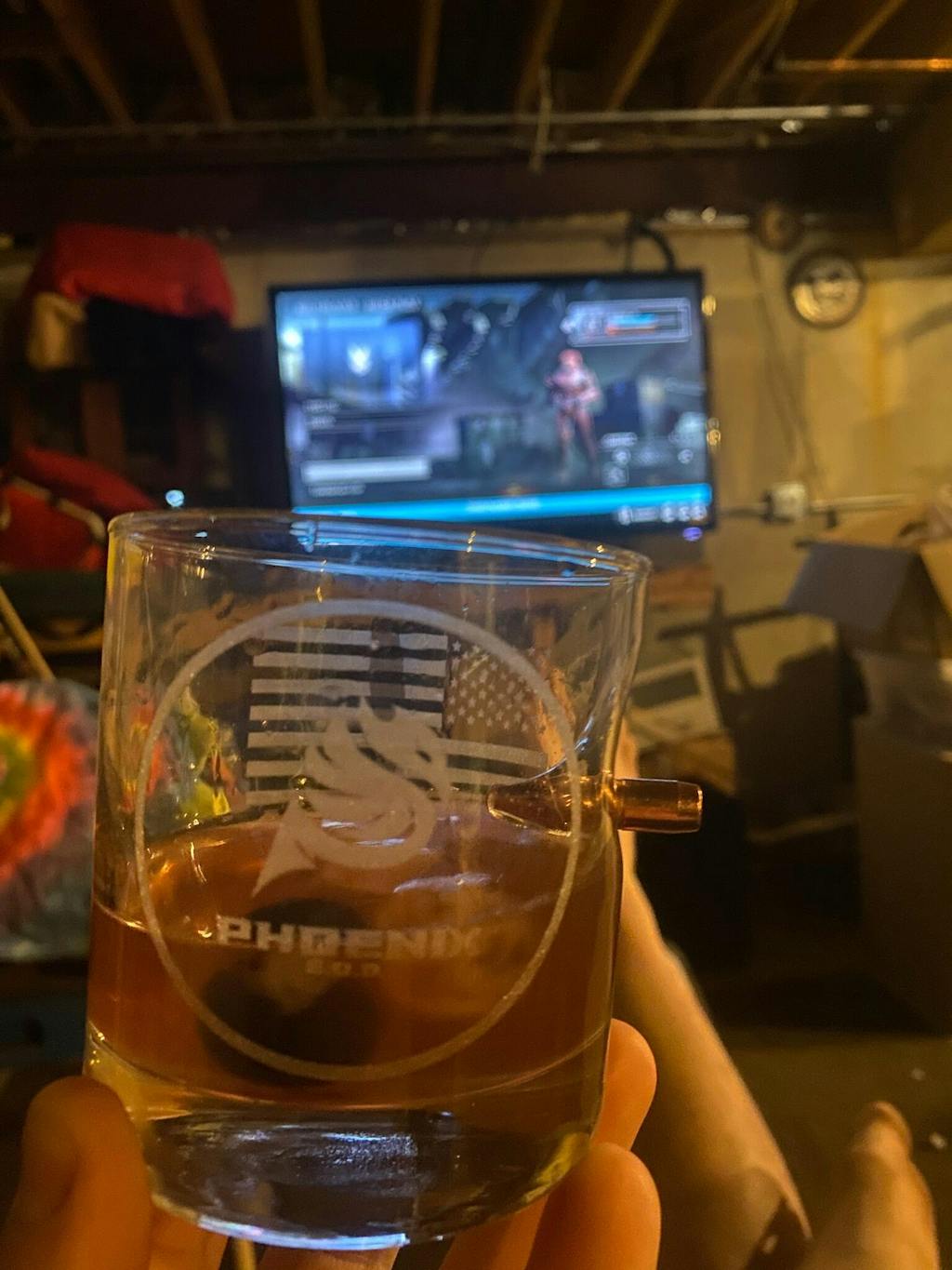 This 11oz whiskey rocks glass features a real 0.308 or 0.45ACP bullet and custom laser engraved with our best selling ‘Merica design. Each glass is hand embedded with a real, lead-free bullet.