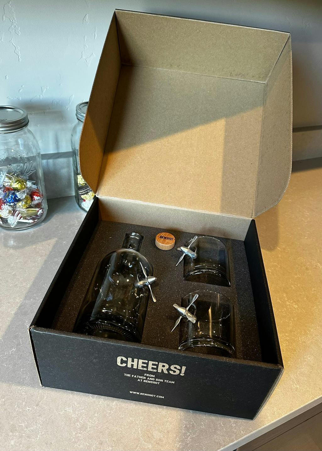 We are a father and son team based in Wisconsin. Our "Bulletproof" shot glass started as a father and son project in 2015 and developed into a family business. Everything we make is our own design and made in the USA.