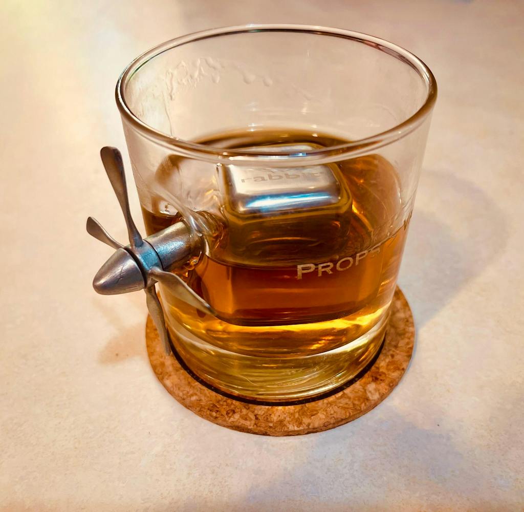 Elevate your drinking experience with these handcrafted glasses featuring a solid metal, spinnable propeller embedded into the side — a bold nod to aviation enthusiasts and craftmanship lovers alike.