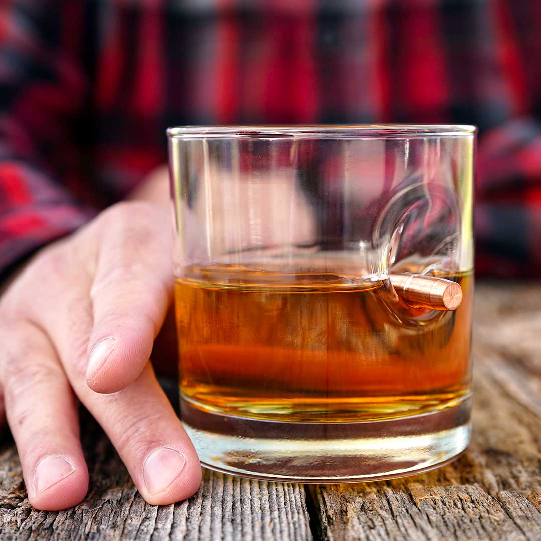 Whether you're gifting to a fellow patriot or adding a striking piece to your home bar, this 11oz rocks glass turns an ordinary drink into a conversation starter. Each glass is hand embedded with a real, lead-free bullet.